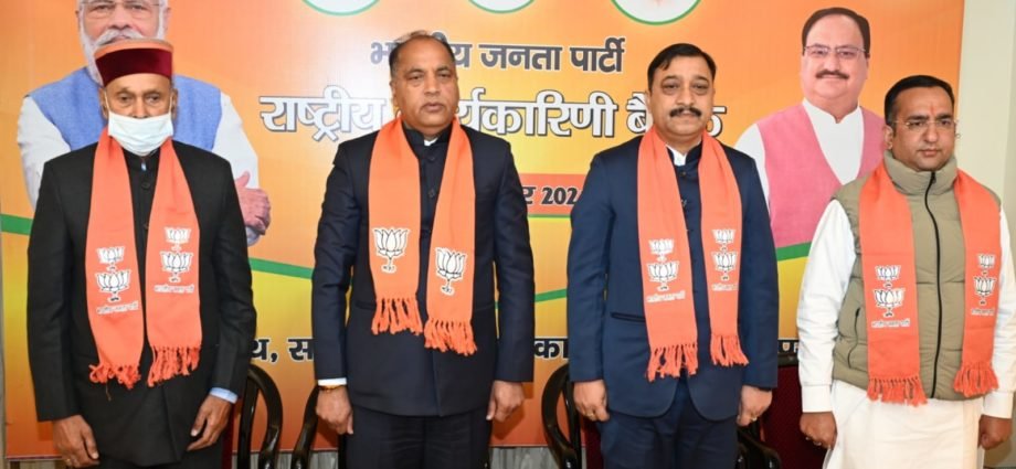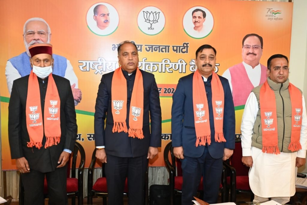 मुख्यमंत्री जयराम ठाकुर ने राष्ट्रीय कार्यकारिणी की बैठक में वर्चुअल माध्यम से हिस्सा लिया हिस्सा लेने के बाद मुख्यमंत्री जयराम ठाकुर ने मीडिया से बात करते हुए कहा कि 2022 के लिए भाजपा का लक्ष्य बिल्कुल सीधा है भाजपा में आज से ही इस लक्ष्य को प्राप्त करने के लिए एक कार्य शुरू कर दिया है जयराम ठाकुर ने कहा कि निश्चित तौर पर हार जीत का सिलसिला चलता रहता है जहां कभी कांग्रेस जीती है तो वही कभी कांग्रेस की भी हार होती है और यह दौर भी बहुत जल्द समाप्त होगा और भाजपा 2022 में मिशन रिपीट की ओर निश्चित तौर पर अग्रसर होगी