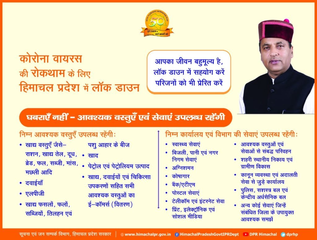 इसके बाद नेता प्रतिपक्ष ने कहा कि पूरा प्रदेश लॉक डाउन किया जाना चाहिए। ताकि प्रदेश को बचाया जा सके। उन्होंने मांग की कि सीएम सदन में घोषणा करें। उन्होंने कहा कि सरकार ने गाड़ियां बन्द कर दी, कर्मचारियों को छुट्टी नहीं कि। फैक्ट्री, मनरेगा और अन्य कर्मियों को पेड होलिडेस हो। दवाई, गैस को लेकर हाहाकार न मचे और न ही कालाबाज़ारी हो। केंद्र से भी कहे कि मनरेगा पेमेंट एडवांस में भेजें। प्रदेश के लोगों को केवल आदेश के अलावा बॉर्डर ढंग से सील करवाएं। पंजाब के साथ लगती सीमाएं अभी सील नहीं हुई है। आपात सेवाओं के कर्मचारियों के सभी कर्मियों को छुट्टी करें। उन्होंने कहा कि हिमाचल में परिंदा भी पर न मार पाए इसके लिए विपक्ष भी आपका साथ देगा। साथ ही उन्होंने ऐसी व्यवस्था की मांग की जिससे विधायक लोगों को सेनेटाइजर और मास्क दे सकें। 31 मार्च नहीं बल्कि 15 दिन तक लॉक डाउन किया जाए।