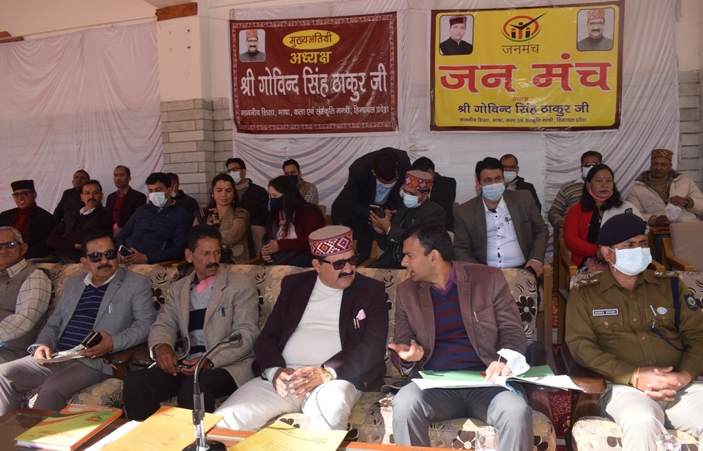 कुल्लू जिले का 24वां जन मंच मनाली विधानसभा क्षेत्र के अंतर्गत राजकीय महाविद्यालय हरिपुर में आयोजित किया गया, जिसकी अध्यक्षता शिक्षा मंत्री गोविंद सिंह ठाकुर ने की।