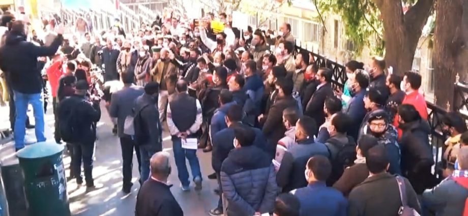 सरकारी बैंको के निजीकरण के विरोध में यूनाइटेड फोरम आफ बैंक के आह्वाहन पर पूरे देश मे आज बैंक बन्द हैं। दो दिन की इस हड़ताल के पहले दिन आज बैंक कर्मियों ने उपायुक्त कार्यालय शिमला के बाहर धरना प्रदर्शन किया और मोदी सरकार के खिलाफ जमकर नारेबाजी की।