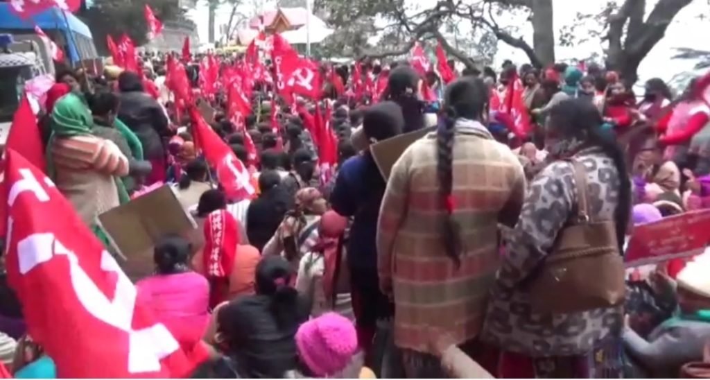 सीटू के बैनर तले सैंकड़ो आंगनबाडी कार्यकर्ताओं ने विधानसभा के बाहर जोरदार प्रदर्शन किया। आंगनवाड़ी कार्यकर्ताओं ने पंचायत भवन से विधानसभा तक रैली निकाली। इस दौरान पुलिस ने उन्हें रोकने की कोशिश की जिस पर पुलिस अधिकारी और सीपीएम कार्यकर्ता के बीच नोक झोंक भी हुई।