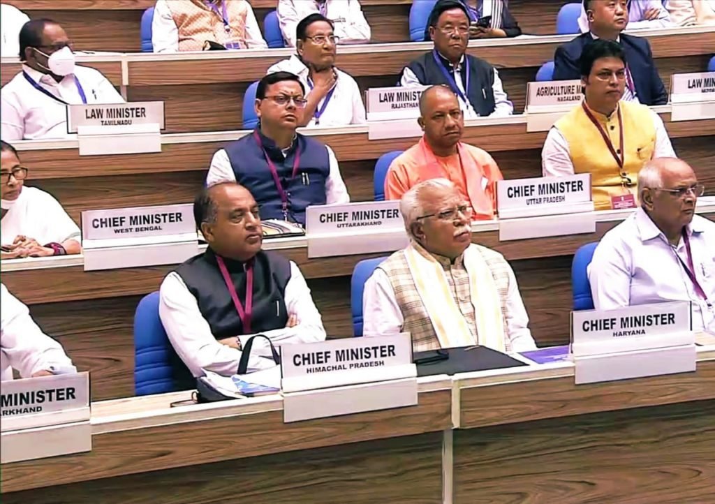 मुख्यमंत्री जय राम ठाकुर ने शनिवार को विज्ञान भवन, नई दिल्ली में आयोजित राज्यों के मुख्यमंत्रियों और उच्च न्यायालयों के मुख्य न्यायाधीशों के संयुक्त सम्मेलन में भाग लिया। प्रधानमंत्री नरेन्द्र मोदी ने सम्मेलन का शुभारम्भ किया और उद्घाटन सत्र को संबोधित किया।