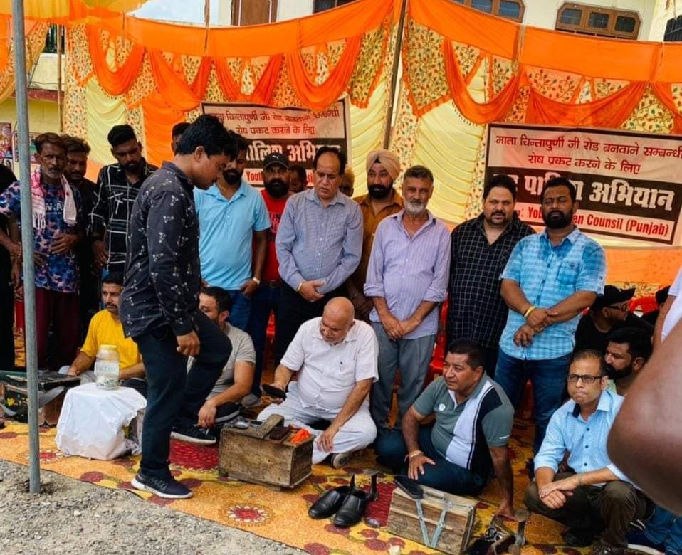भाजपा प्रदेश प्रभारी अविनाश राय खन्ना ने माता चिंतपूर्णी सड़क निर्माण के लिए बूट पॉलिश अभियान की शुरुआत की।