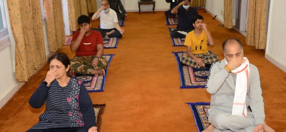 कोरोना महामारी के चलते मुख्यमंत्री जयराम ठाकुर ने योग दिवस अपने सरकारी आवास ओक ओवर में ही मनाया है। इनके साथ उनकी पत्नी डॉ साधना ठाकुर और कुछ अन्य लोगों ने भी योग किया।