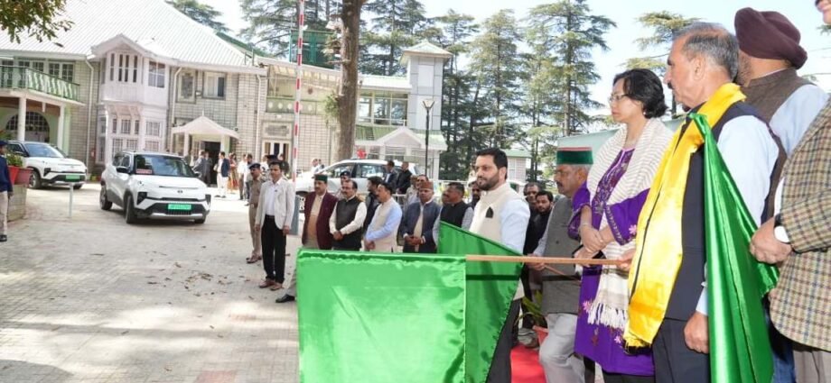 मुख्यमंत्री ठाकुर सुखविंद्र सिंह सुक्खू ने आज अपने सरकारी आवास ओक ओवर से राजीव गांधी स्वरोजगार स्टार्ट-अप योजना के अंतर्गत 18 ई-टैक्सियों को झंडी दिखाकर रवाना किया।