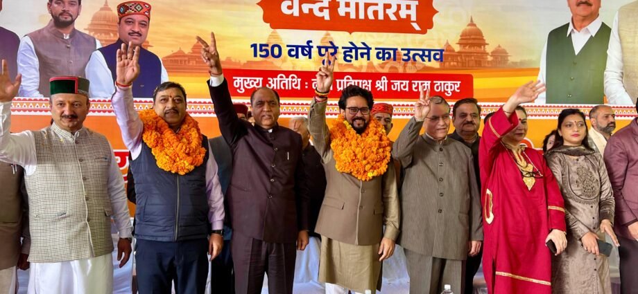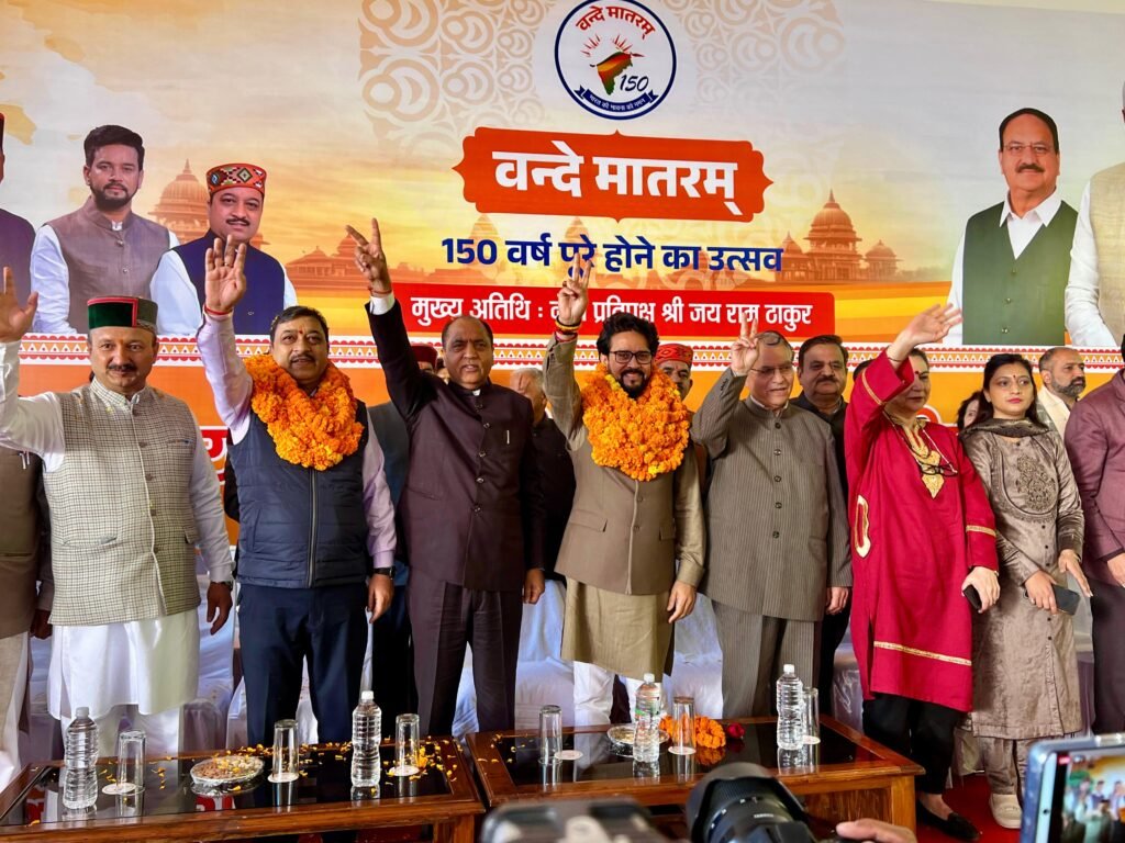 पूर्व केंद्रीय मंत्री व हमीरपुर लोकसभा क्षेत्र से सांसद अनुराग सिंह ठाकुर ने आज राष्ट्रीय गीत वंदे मातरम के 150 वर्ष पूर्ण होने व स्मरणोत्सव के शुभारंभ पर देवभूमि हिमाचल के शिमला में राष्ट्रीय गीत वंदे मातरम का सामूहिक गायन व राष्ट्रगीत के प्रति अपने विचारों को प्रकट किया।