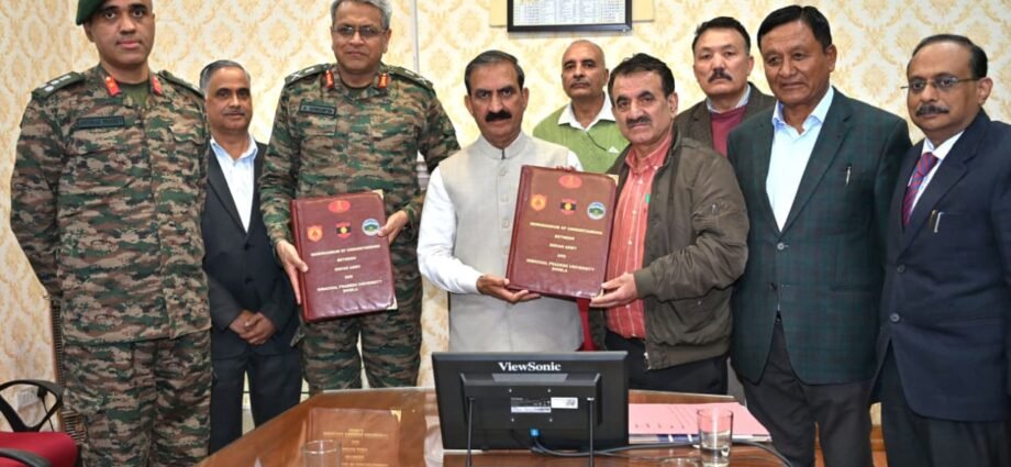 मुख्यमंत्री ठाकुर सुखविंद्र सिंह सुक्खू की उपस्थिति में आज हिमाचल प्रदेश विश्वविद्यालय, शिमला और भारतीय सेना के बीच सहयोगात्मक अनुसंधान एवं विकास पहलों को बढ़ावा देने के लिए एक समझौता ज्ञापन (एमओयू) पर हस्ताक्षर किए गए।