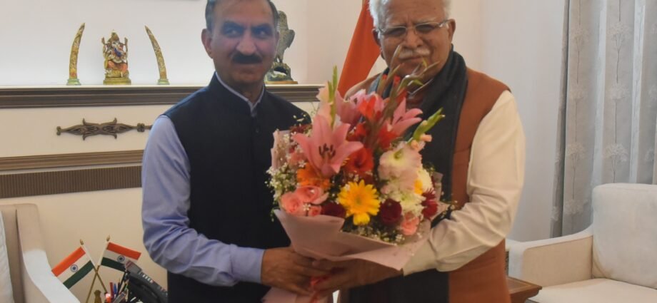 मुख्यमंत्री ठाकुर सुखविन्द्र सिंह सक्खू ने आज नई दिल्ली में केंद्रीय आवासन एवं शहरी कार्य मंत्री मनोहर लाल खट्टर से शिष्टाचार भेंट की।