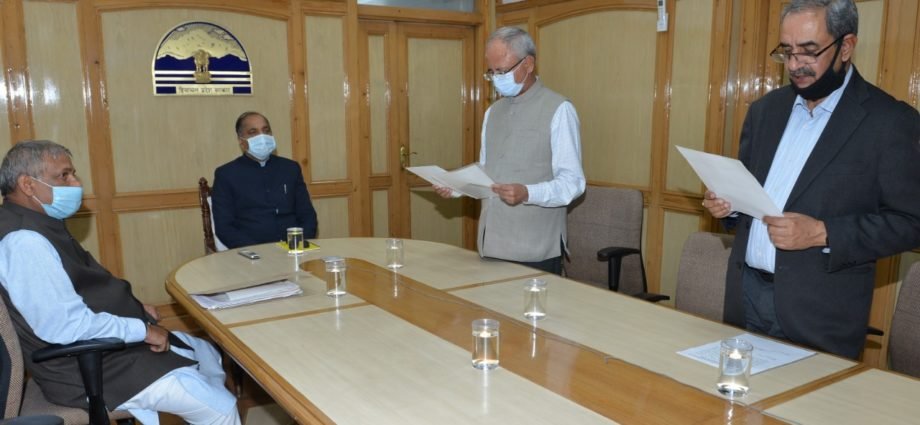 मुख्य सचिव अनिल खाची ने मुख्यमंत्री जय राम ठाकुर की उपस्थिति में देवेन्द्र कुमार शर्मा को हिमाचल प्रदेश विद्युत नियामक आयोग के अध्यक्ष के रूप में पद, गोपनीयता और भारतीय संविधान के प्रति कत्र्तव्यनिष्ठा की शपथ दिलाई।