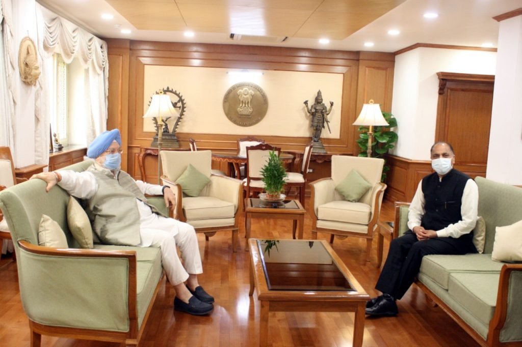 मुख्यमंत्री जय राम ठाकुर ने आज नई दिल्ली में केन्द्रीय नागरिक उड्डयन, आवासन एवं शहरी कार्य राज्य मंत्री हरदीप सिंह पुरी से भेंट की।
