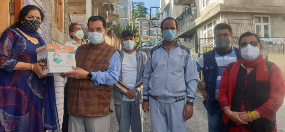 शहरी विकास मंत्री सुरेश भारद्वाज ने शिमला नगर निगम के तहत वार्ड नम्बर 1 भराड़ी में आयुष होम आइसोलेशन किट का वितरण किया। उन्होंने कहा कि कोरोना संक्रमण की दूसरी लहर के तहत होम आइसोलेशन में रह कर ईलाज की सलाह को अपनाते हुए अधिकतर लोगों द्वारा घर में रह कर संक्रमण का ईलाज किया गया, जिन्हें प्रदेश सरकार द्वारा दवाईयां, इम्यूनिटी बूस्टर, काढ़ा आदि प्रदान किए जा रहे हैं उसी के तहत आज भराड़ी वार्ड में 15 रोगियों के परिजनों को आयुष किट प्रदान की गई।