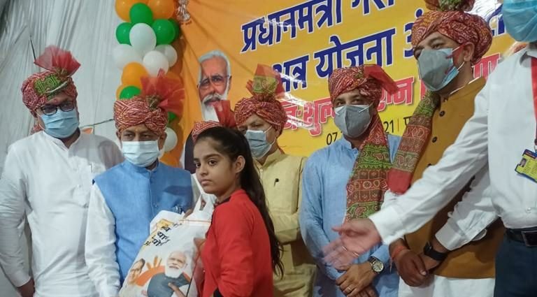 खाद्य, नागरिक आपूर्ति एवं उपभोक्ता मामले मंत्री राजिन्द्र गर्ग ने आज मध्य प्रदेश के जिला रायसेन के सांची में प्रधानमंत्री गरीब कल्याण अन्य योजना के अन्तर्गत क्षेत्रवासियों को निःशुल्क राशन किट प्रदान की।