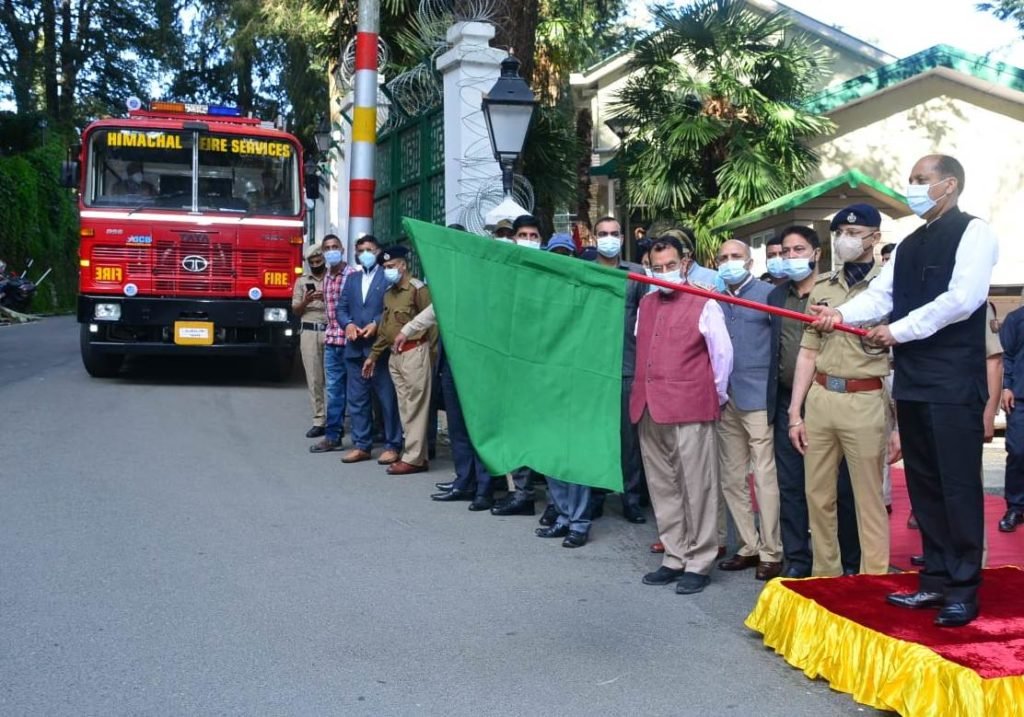 मुख्यमंत्री जय राम ठाकुर ने मंगलवार को प्रदेश के विभिन्न भागों में स्थित अग्निशमन केंद्रों और उप-अग्निशमन केंद्रों के लिए अग्निशमन सेवाएं विभाग के 17 अग्निशमन वाहनों को हरी झंडी दिखाकर रवाना किया।