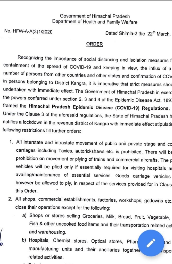 कोरोना वायरस- हिमाचल का कांगड़ा ज़िला लॉक डाउन, अधिसूचना जारी